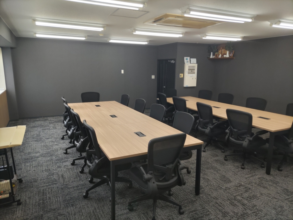 会議室をかっこよく改装したい、とのご依頼があり、タイルカーペット・クロス張替と会議室用家具一式を納入いたしました。