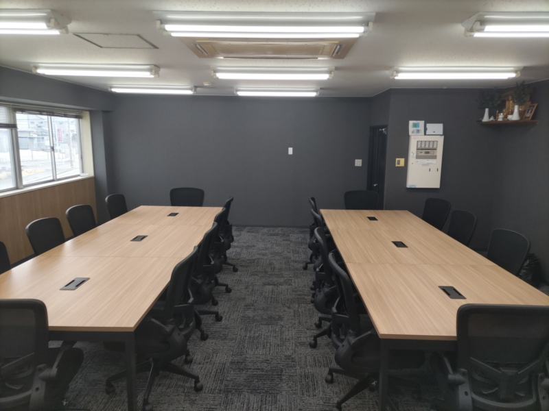 会議室をかっこよく改装したい、とのご依頼があり、タイルカーペット・クロス張替と会議室用家具一式を納入いたしました。